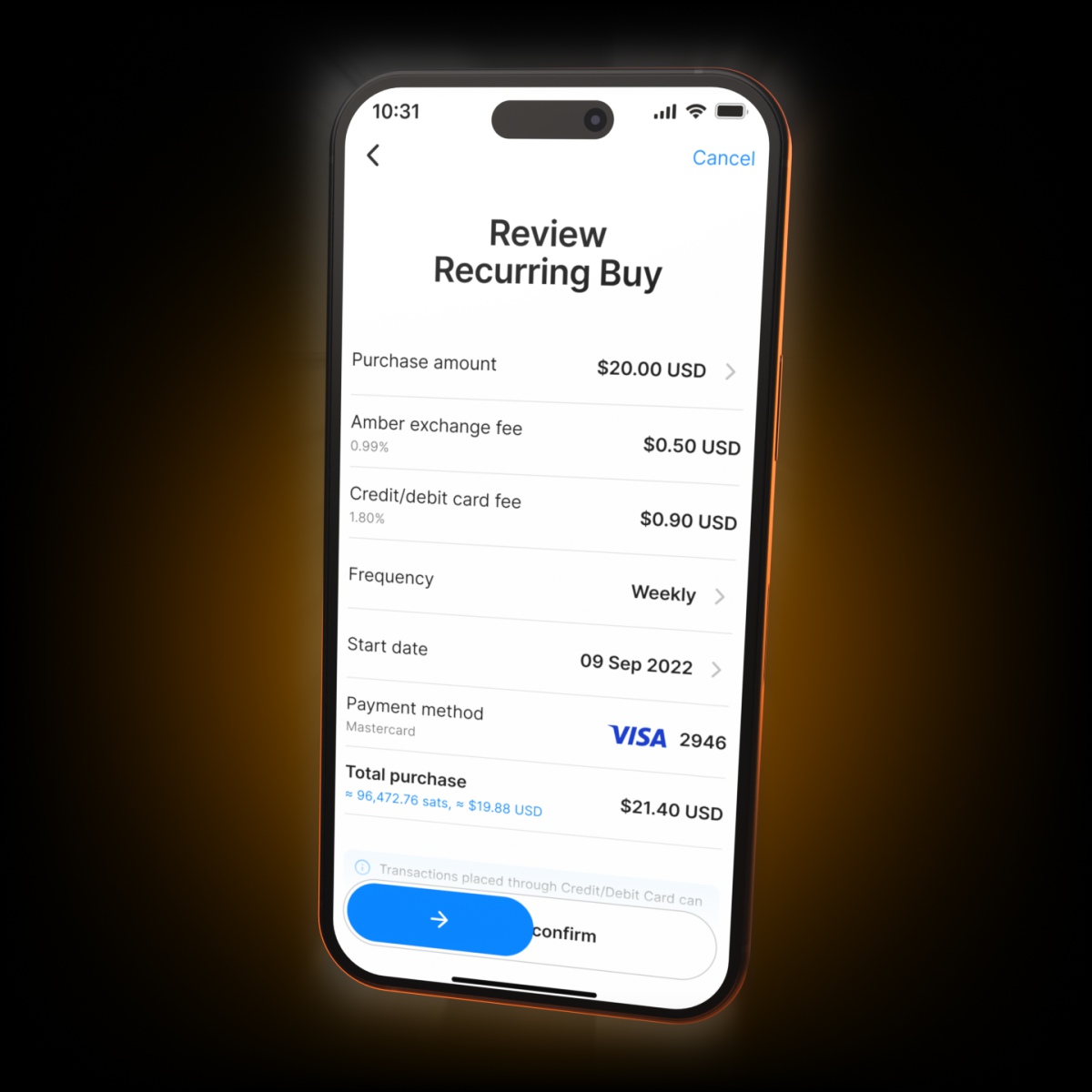 Adopt a dollar-cost averaging approach effortlessly with our recurring purchase feature. Predict and plan your Bitcoin accumulation with our insightful DCA calculator.